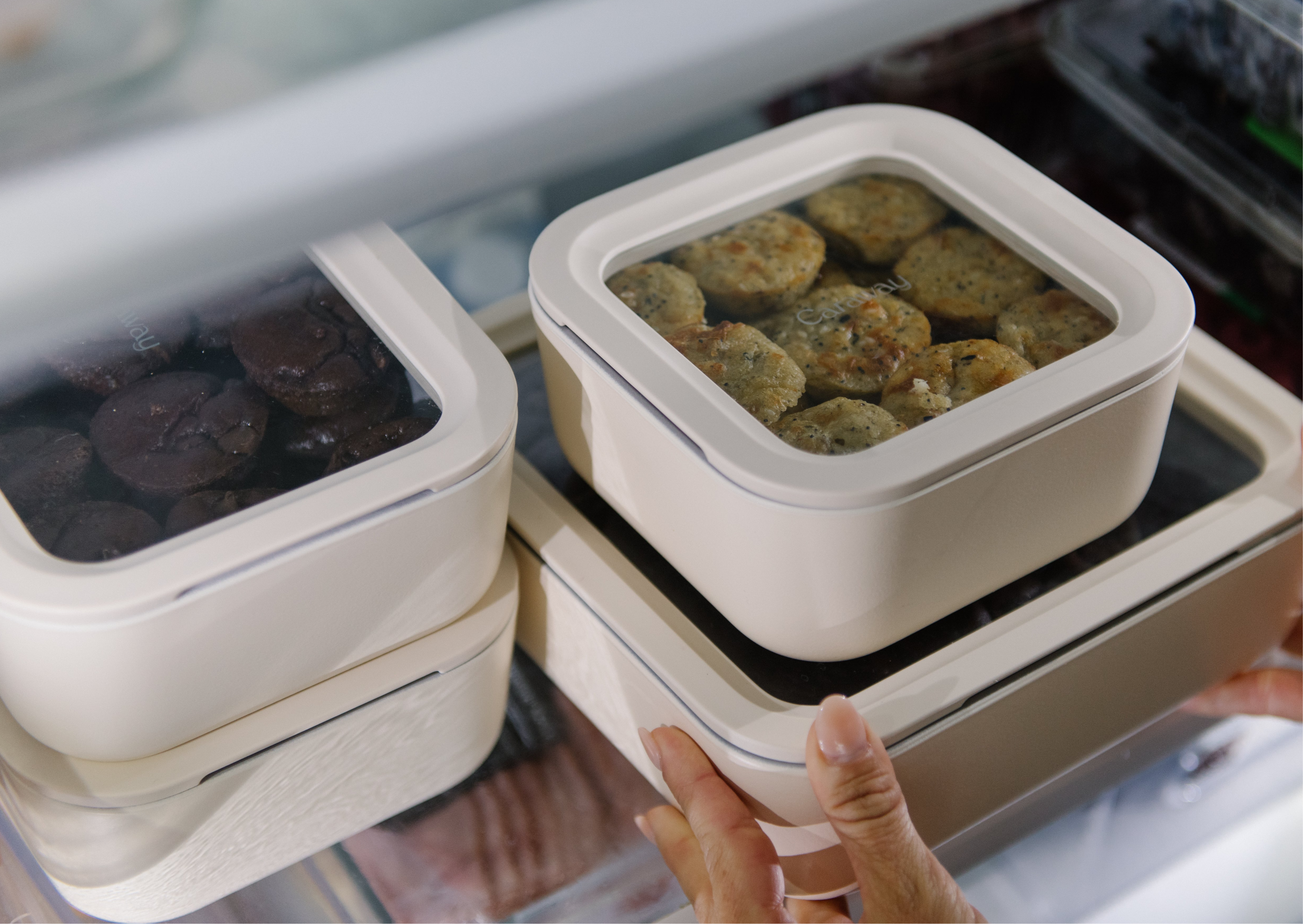 Batch Balanced was designed to work ahead. Many customers bake once and enjoy their muffins throughout the week. Bake when you have time. Come back to it when you don’t.