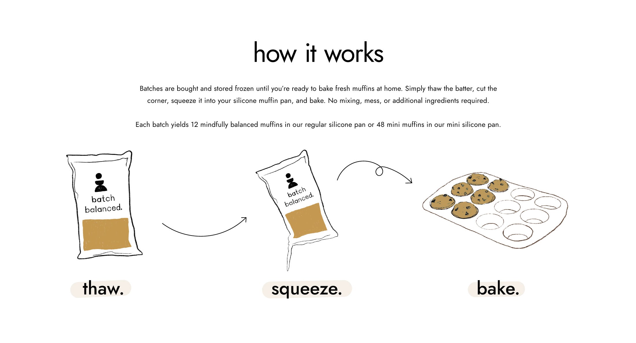 Our protein muffin batter arrives frozen and ready to bake. Simply thaw, squeeze, and bake for fresh, delicious muffins any time. Perfect for meal prep or a quick healthy breakfast on busy mornings.