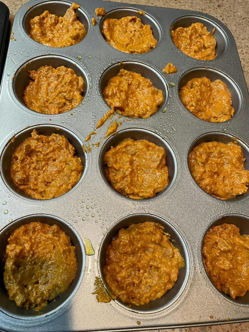 3. Cut corner of pouch and squeeze into greased muffin tin