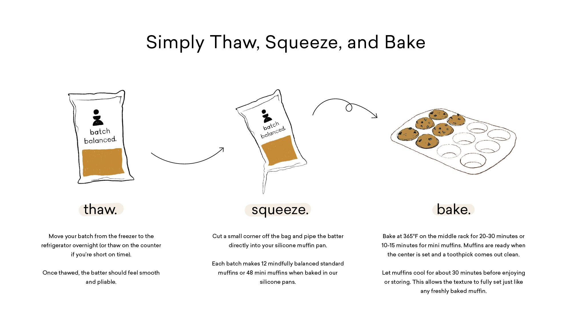 Our protein muffin batter arrives frozen and ready to bake. Simply thaw, squeeze, and bake for fresh, delicious muffins any time. Perfect for meal prep or a quick healthy breakfast on busy mornings.